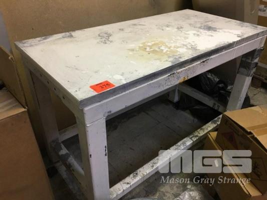 HEAVY DUTY STEEL BENCH, TIMBER TOP, 1200 x 600mm STEEL RACK, 4 TIER, 2400 x 1800 x 450mm