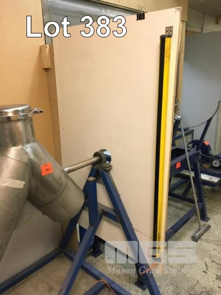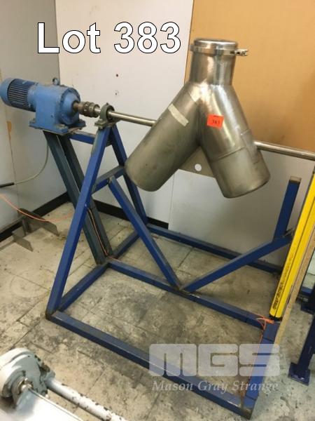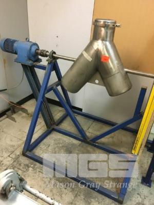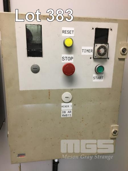 CUSTOM ROTARY MIXER 415v DRIVE ON FABRICATED STAND, Y SECTION MIXING CANISTER CONTROL PANEL w RED EYE GUARDING