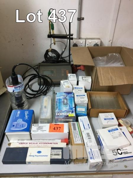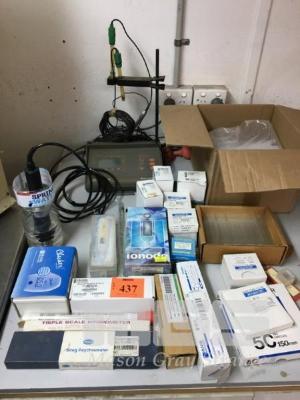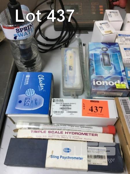 ASSORTED LAB SUPPLIES, SILICA CHECK, PSYCHROMETER, BECKMAN 50 PH METER PH SCAN TEST, ect.