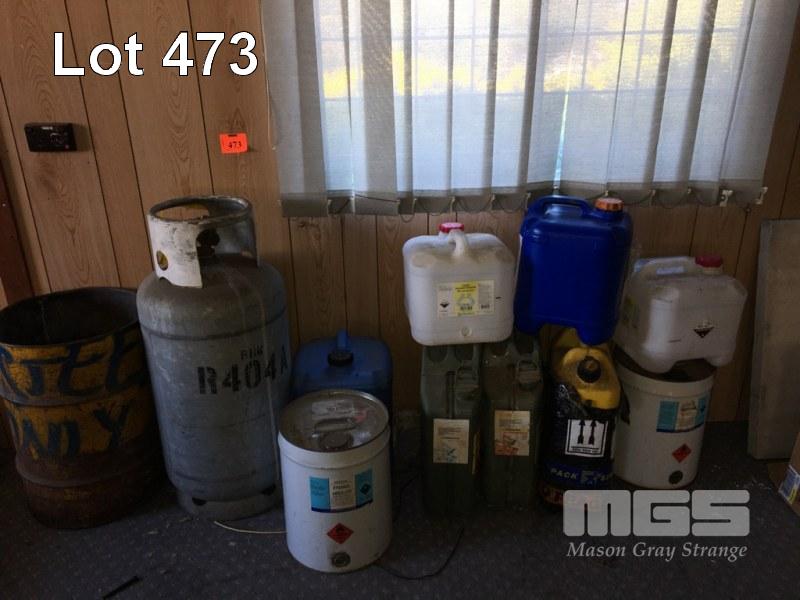 2 x STEEL JERRY CANS, 20 LITRE YELLOW DIESEL JERRY CAN, ASSORTED DRUMS,