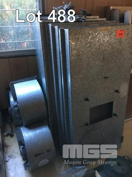 3 x BLOWER FANS, 240v, w GALV IRON PANELS TO SUIT