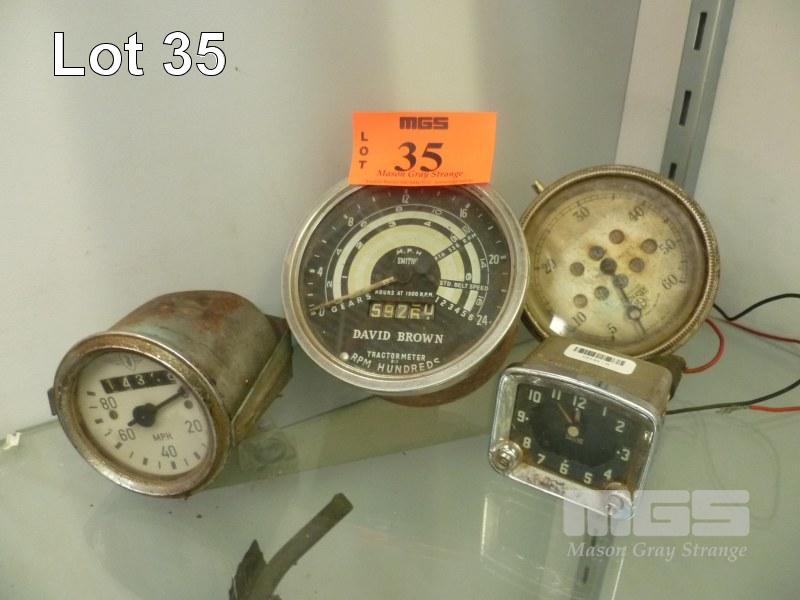 4 x VINTAGE GAUGES INCLUDING DAVID BROWN, VDO & SMITHS