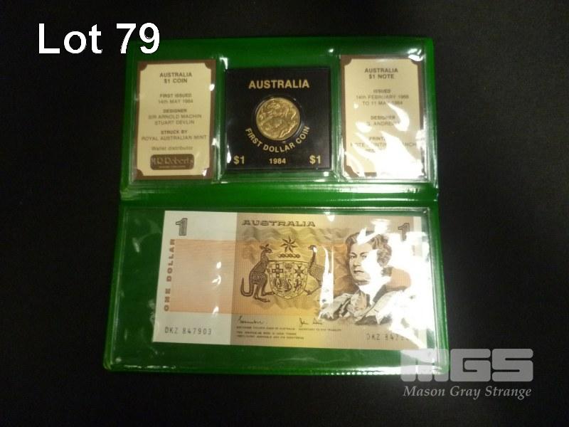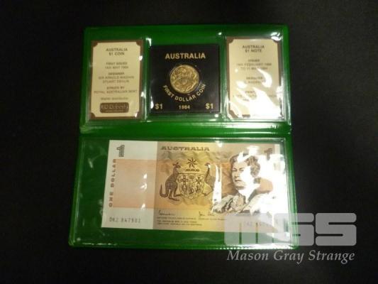 1984 AUST LAST 2 DOLLAR NOTE 1ST $2 COIN SET IN WALLET