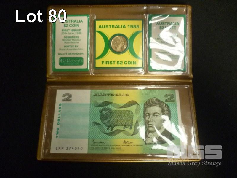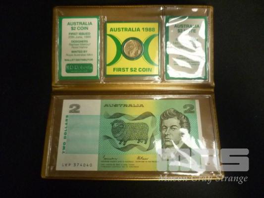 1988 AUST LAST $2.00 NOTE 1ST $2 COIN SET IN WALLET
