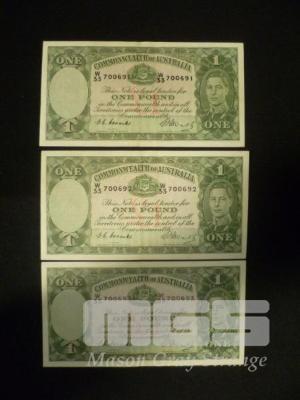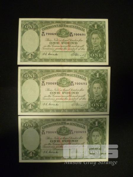 1949 3 x 1 POUND NOTES CONSECUTIVE COOMBS WATT APPEARS HIGH GRADE