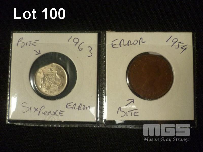 ERROR COINS BITES OUT THE SIDES, 1963 SIXPENCE - 1954 AUST HALF PENNY