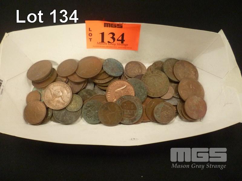 VINTAGE AUSTRALIAN COINS, PENNYS, 1 x TRAY
