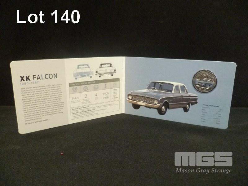 2017, 50c COLOURED UNCIRCULATED COIN FOLDER, 1960 XK FALCON DELUXE