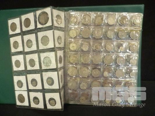 RENNIKS AUSTRALIAN COIN ALBUM CONTAINING ASSORTED WORLD COINS, INCLUDING SILVER