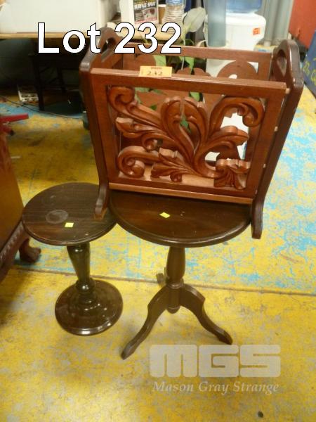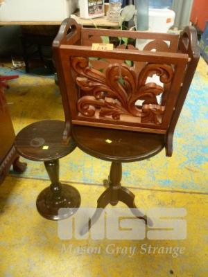 MAHOGANY MAGAZINE RACK, WINE TABLE & STAND