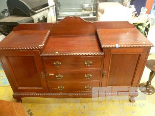 MAHOGANY SIDEBOARD, 3 x DRAWER, 2 x DOOR, PIE CRUST EDGE, BALL & CLAW FEET (1 x LEG REQUIRES REPAIR, SCRATCHES)
