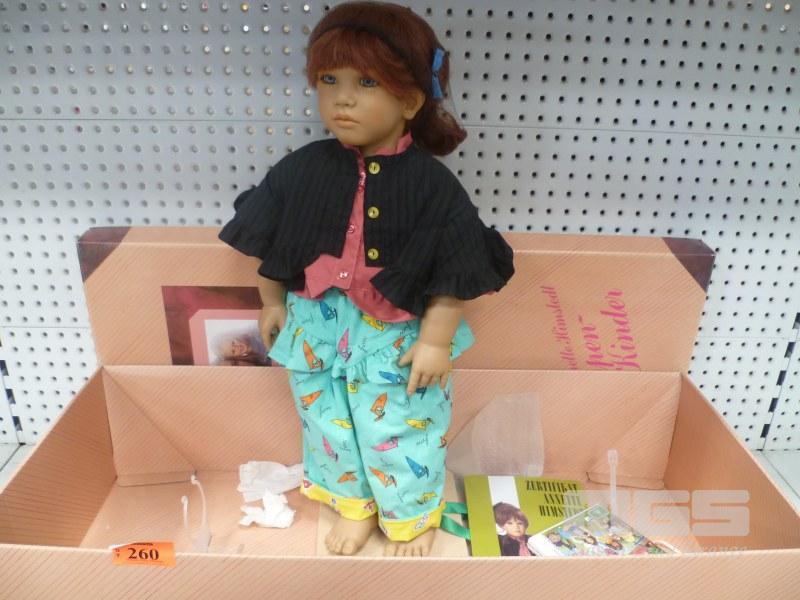 ANNETTE HIMSTEDT PUPPEN KINDER, JANKA DRESS DOLL ON DISPLAY STAND, 2' (H), SHIRT & PANTS, NEW IN BOX
