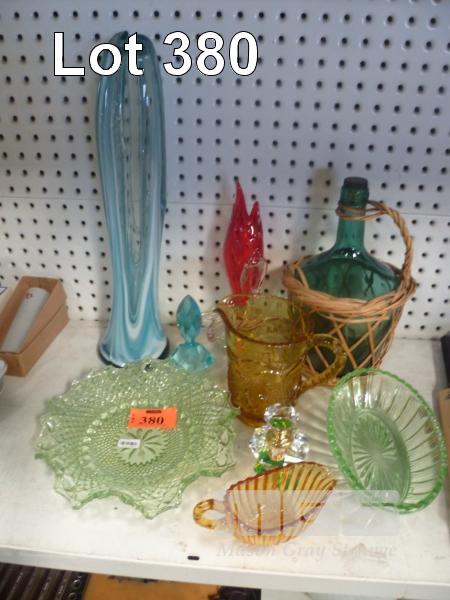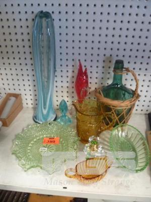 VARIOUS COLOURED GLASSWARE, GREEN, AMBER, ETC