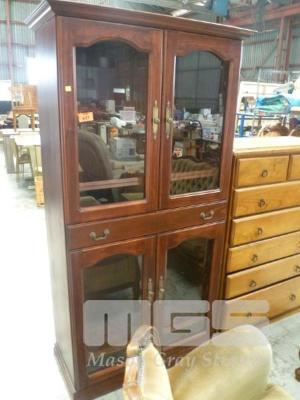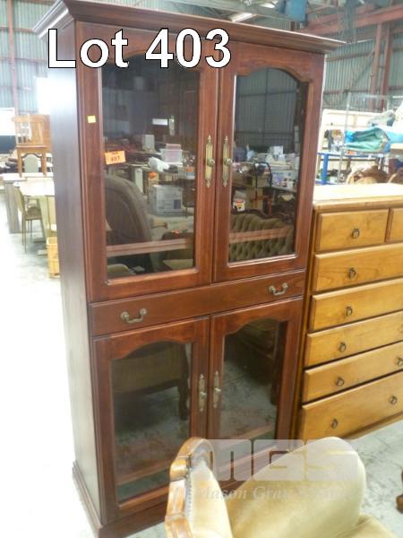 MAHOGANY GLASS FRONTED 4 DOOR, SINGLE DRAWER CABINET