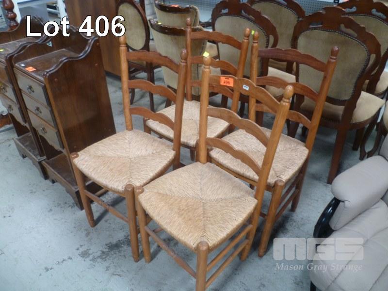 SET 4 TIMBER DINING CHAIRS, SEA GRASS WEAVE SEATS