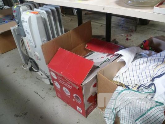 2 x OIL COLUMN HEATERS & BOX FAN