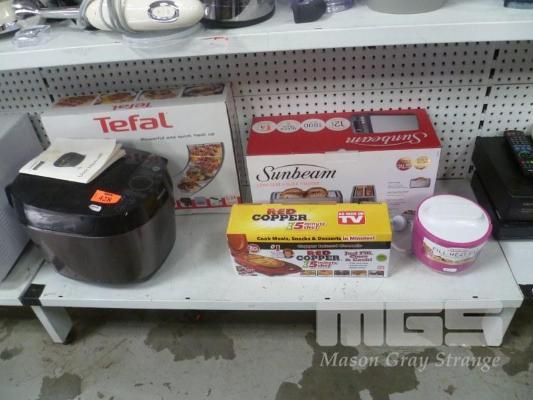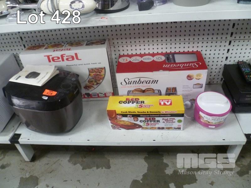 PHILIPS RICE COOKER, TEFAL POWER GRILL, SUNBEAM 4 SLICE TOASTER, RED COPPER & SUNBEAM FILL HEAT EAT FOOD WARMER