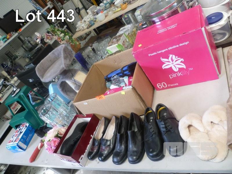COAT HANGERS, SHOES, CAT PLAY STAND, TABLE LAMPS, ETC, 1 x TABLE