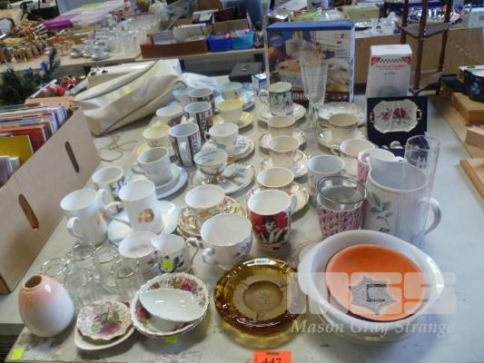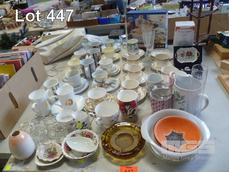 ASSORTED TEA TRIOS, CUPS, GLASSWARE, ETC