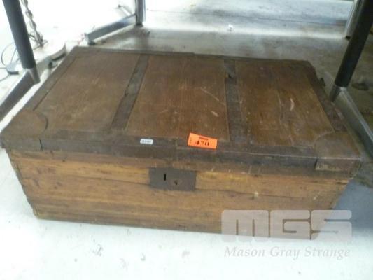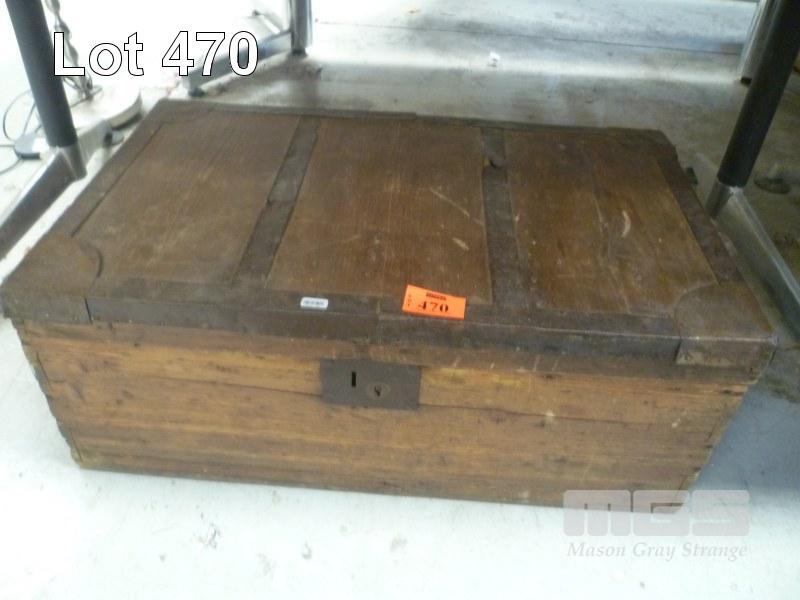 RUSTIC PINE TRUNK, METAL BANDING TOP, 74 x 46 x 30cm