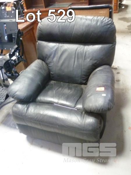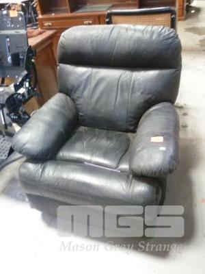 BLACK VINYL UPHOLSTERED RECLINER ARM CHAIR