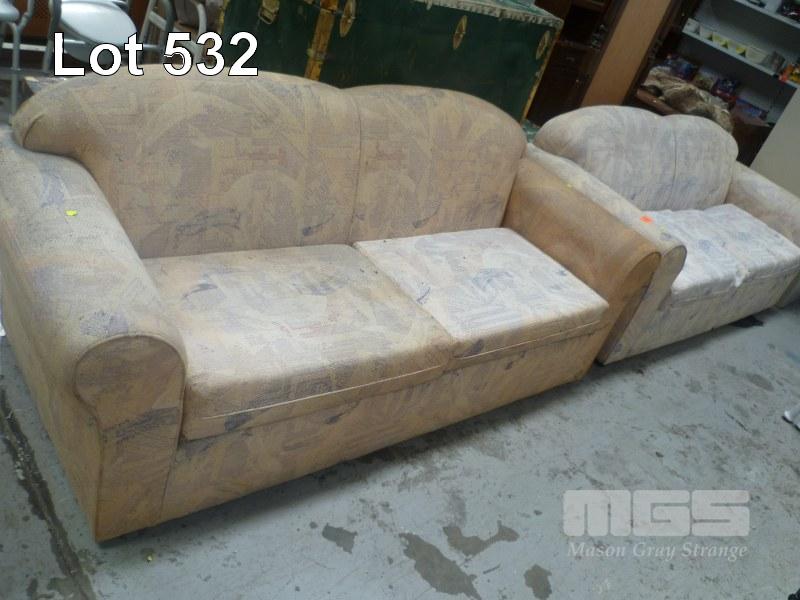 BEIGE PATTERN FABRIC 2.5 SEATER LOUNGE & SOFA BED