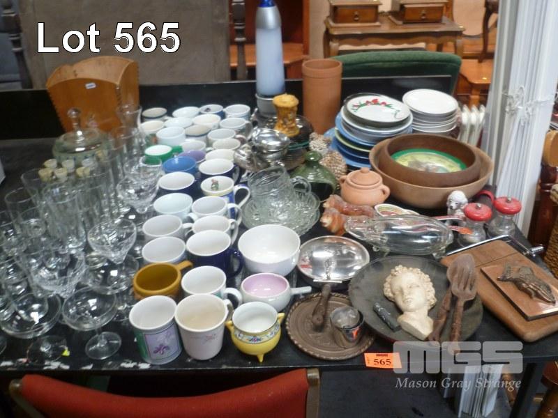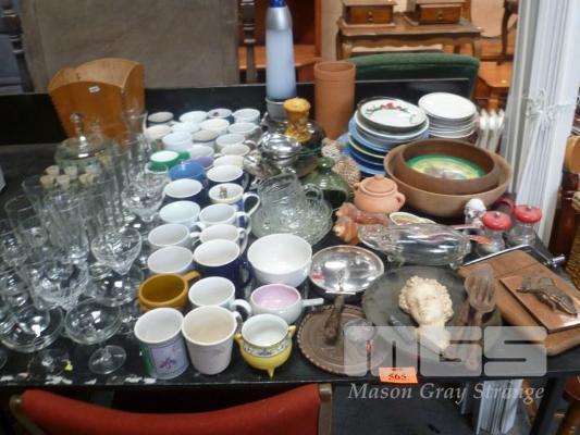ASSORTED GLASSWARE, CUPS, PLATES, ETC, 1 x TABLE