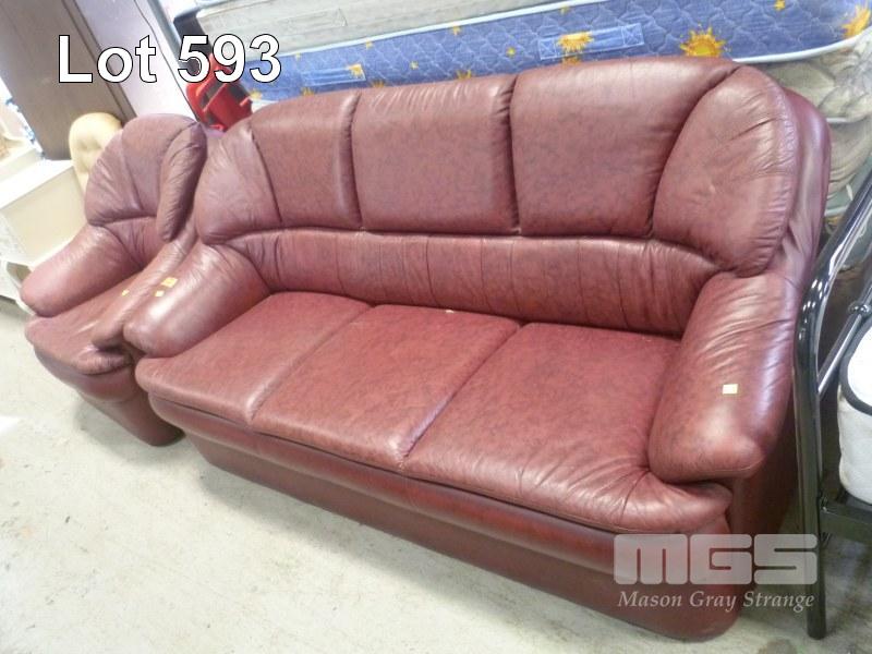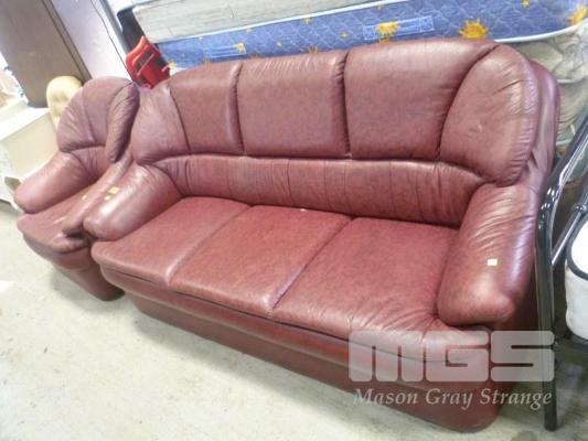 BROWN LEATHER 3 SEATER LOUNGE WITH MATCHING SINGLE SEATER