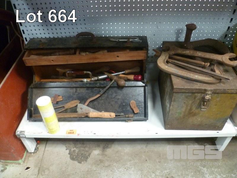 CARPENTERS TRUNK & ASSORTED HAND TOOLS