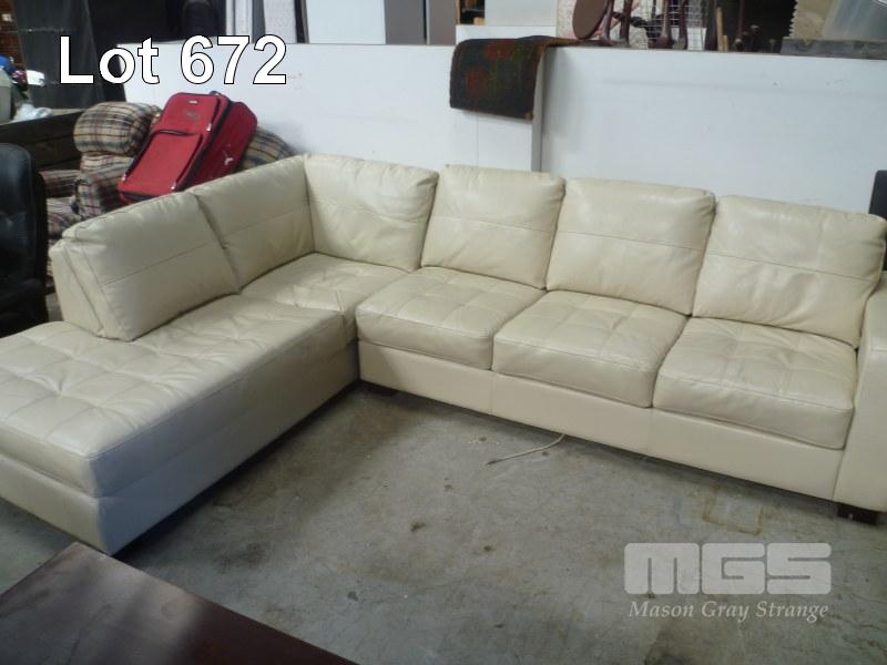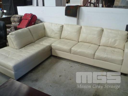CREAM LEATHER 2 PIECE CORNER MODULAR LOUNGE