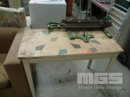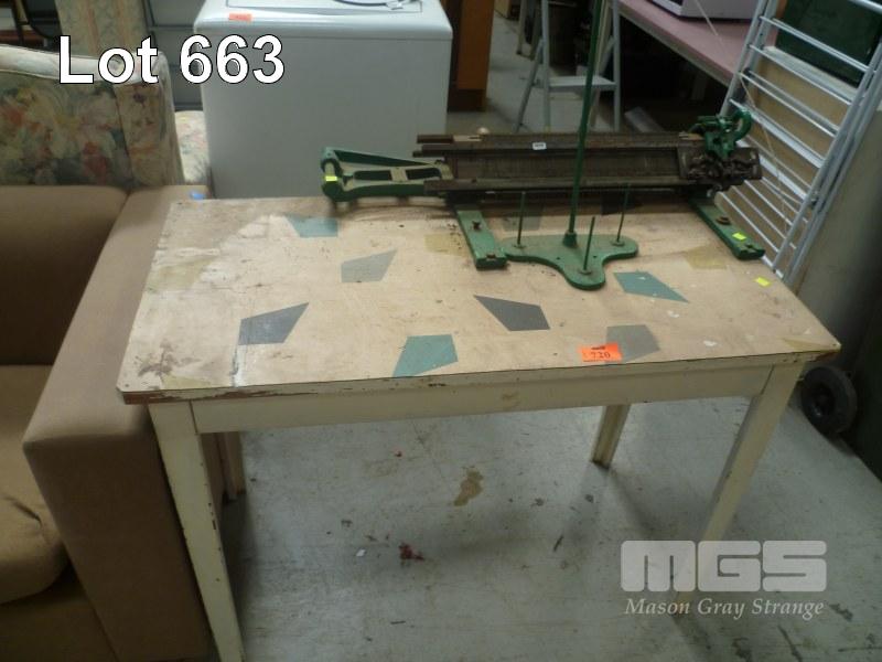VINTAGE KNITTING MACHINE, ATTACHED TO TABLE