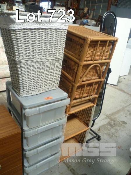 PLASTIC DRAWER UNIT, CANE DRAWER UNIT, SHELF UNIT, LAUNDRY BASKET & CHEVAL MIRROR