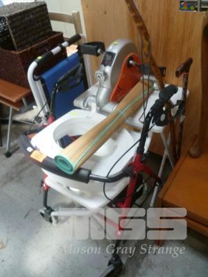 RED MOBILITY WALKER,ASSIST CHAIR, WALKING STICK, HIKING POLE., EXERCISE WALKER & PEDAL EXERCISER
