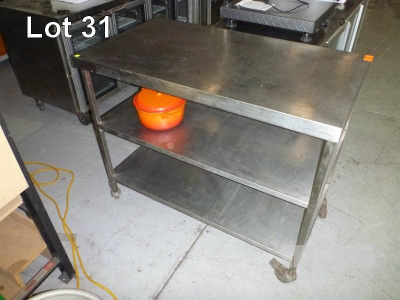 MOBILE STAINLESS STEEL BENCH, 110 x 60cm, 3 TIER