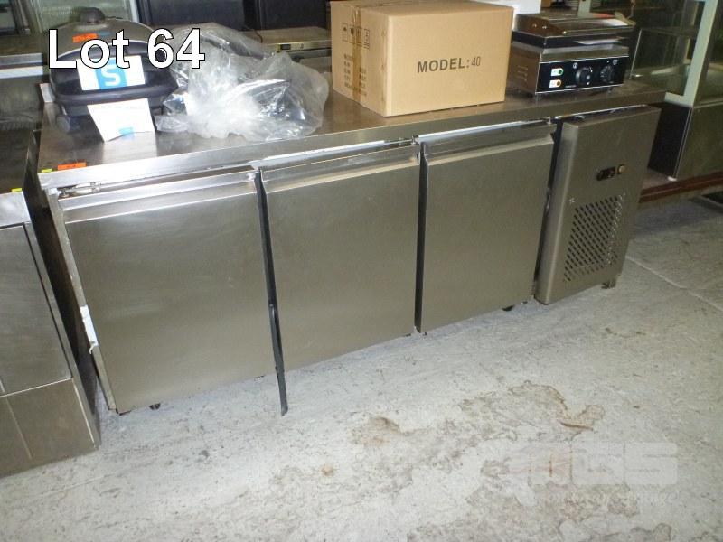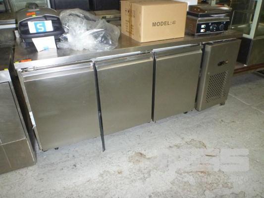 COUNTER CHEFS FRIDGE, 3 DOOR 190cm, STAINLESS STEEL CASED, SELF CONTAINED UNIT, 240V ( WORN RUBBER DOOR SEAL )