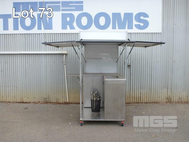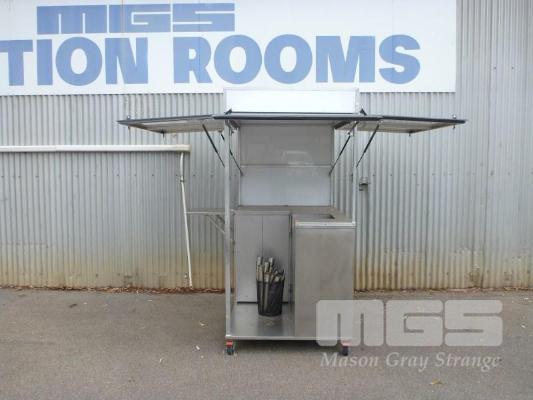 MOBILE COFFEE CART, 110 x 140 x 227cm (H) 3 x LIFT UP SERVING WINDOWS, CASH DRAWER RECESS & STORAGE (NO KEYS)