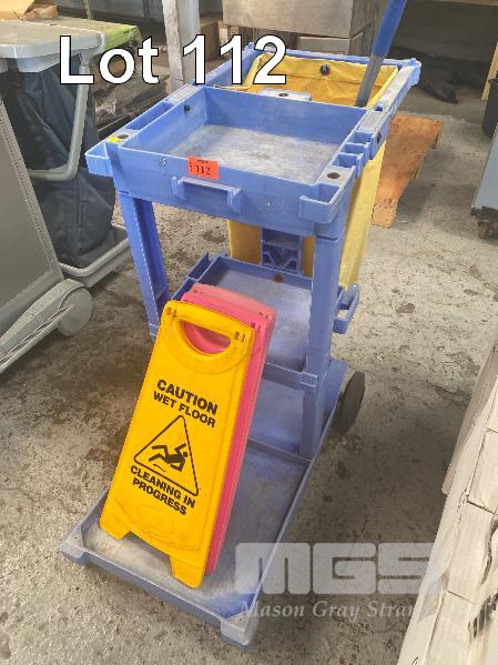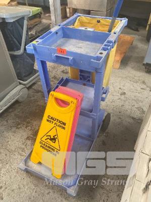 OATES CLEANING TROLLEY WITH 3 x FLOOR CAUTION SIGNS