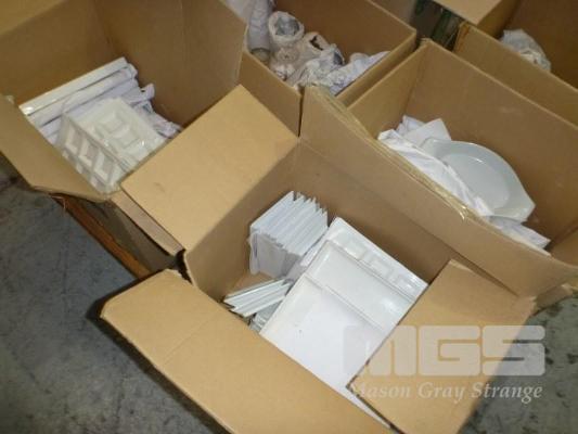ASSORTED GLASSWARE, PLATTERS, DISHES, ETC