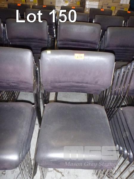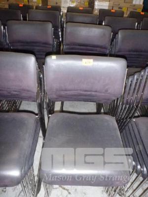 24 x STACKING CHAIRS, BLACK VINYL, CHROME FRAME