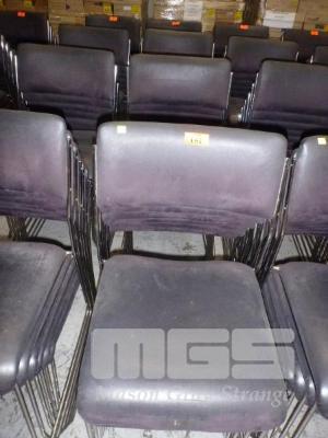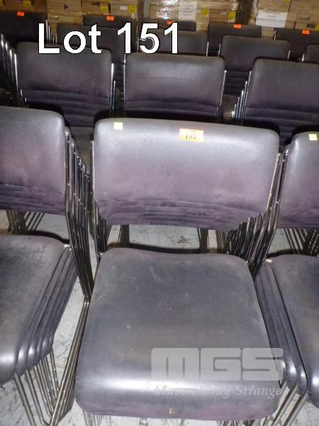 24 x STACKING CHAIRS, BLACK VINYL, CHROME FRAME