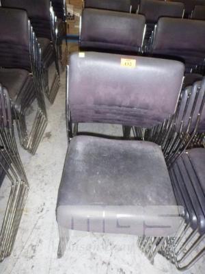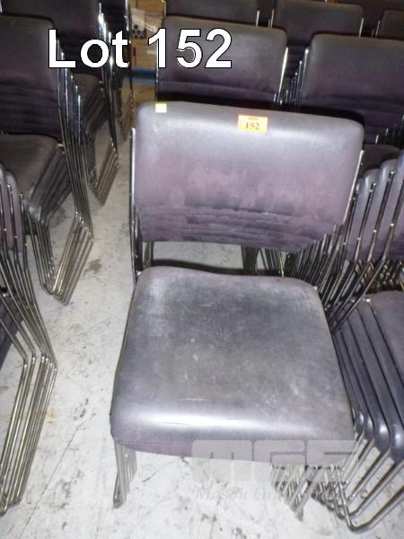 24 x STACKING CHAIRS, BLACK VINYL, CHROME FRAME