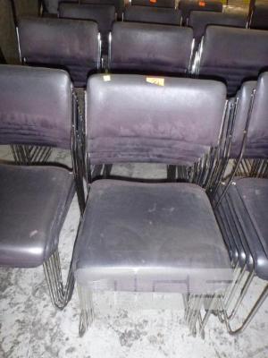 24 x STACKING CHAIRS, BLACK VINYL, CHROME FRAME
