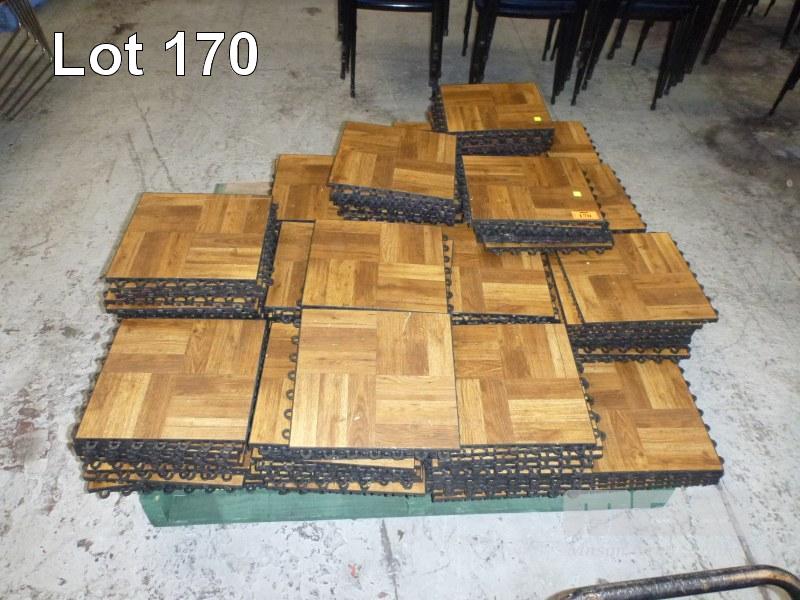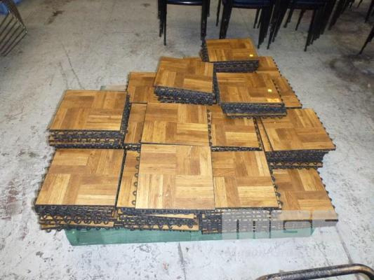 SNAP LOCK DANCE FLOOR TILES, EACH 12" x 12", RUBBER BACKING, 180 TILES APPROX, 17m2