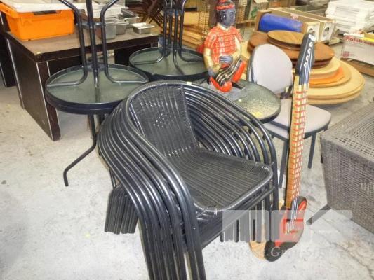 5 x OUTDOOR TABLES, 60cm DIAMETER, 10 x WICKER CHAIRS & GAS PATIO HEATER