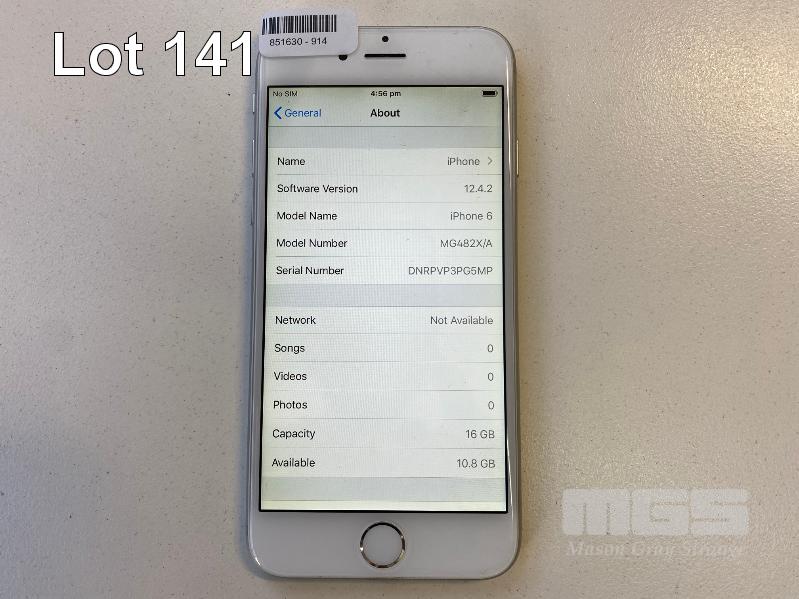 APPLE iPHONE 6, 16GB, SILVER, MODEL A1586 (NO CHARGER, NO CABLE) S/N:DNRPVP3PG5MP
