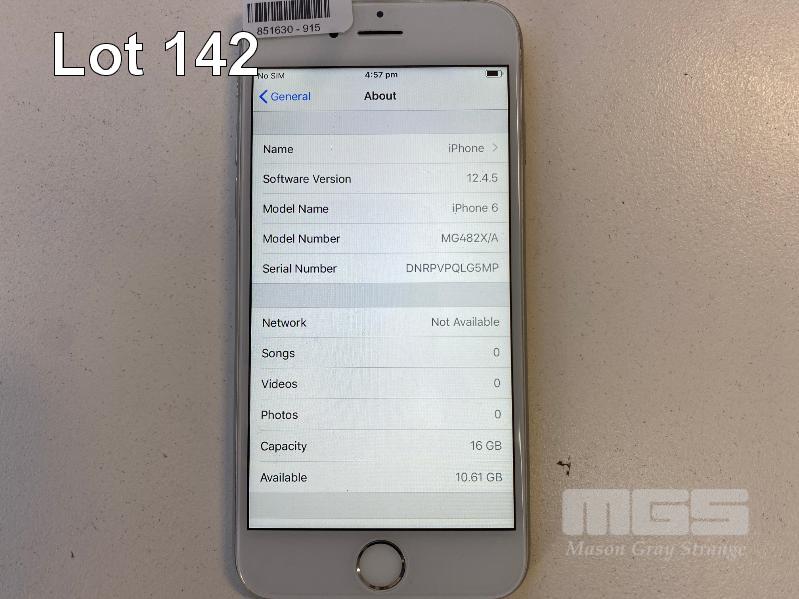APPLE iPHONE 6, 16GB, SILVER, MODEL A1586 (NO CHARGER, NO CABLE) S/N:DNRPVPQLG5MP