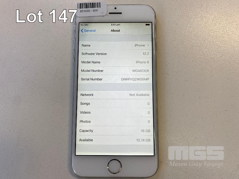 APPLE iPHONE 6, 16GB, SILVER, MODEL A1586 (NO CHARGER, NO CABLE) S/N:DNRPVQ2WG5MP