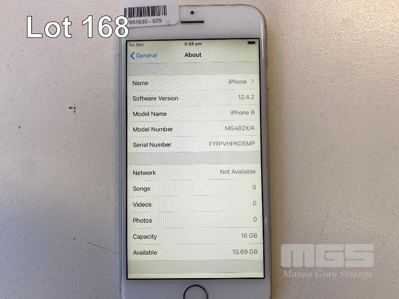 APPLE iPHONE 6, 16GB, SILVER, MODEL A1586 (NO CHARGER, NO CABLE) S/N:F19PVHPKG5MP