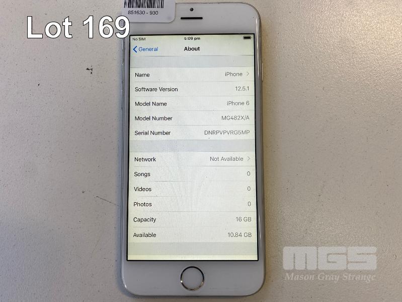 APPLE iPHONE 6, 16GB, SILVER, MODEL A1586 (NO CHARGER, NO CABLE) S/N:DNRPVPVRG5MP