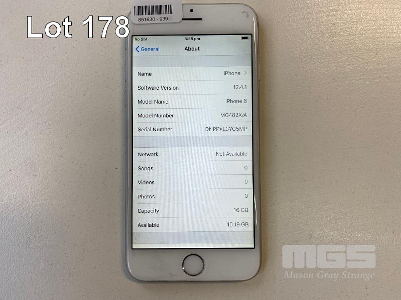 APPLE iPHONE 6, 16GB, SILVER, MODEL A1586 (NO CHARGER, NO CABLE) S/N:DNPPXL3YG5MP